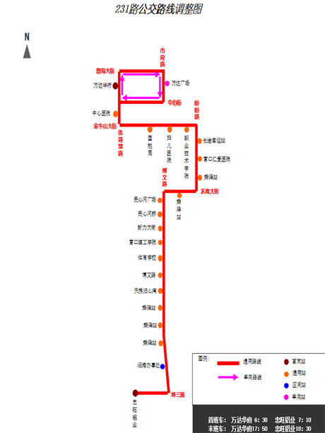 開往萬(wàn)達(dá)廣場(chǎng)方向:7:10—7:45/17:20—18:00(經(jīng)停沿海辦事處時(shí)間預(yù)計(jì)7:13—7:48/17:23—18:03)。